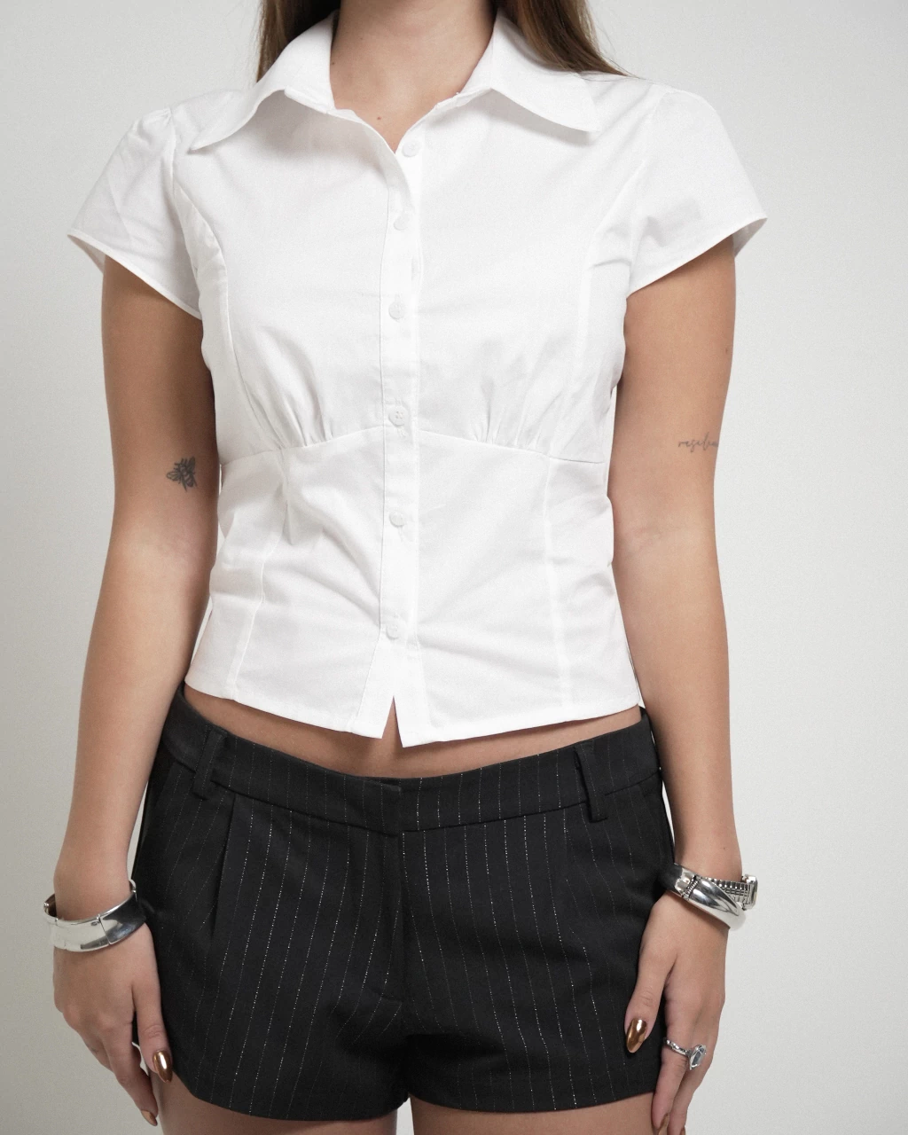 Blusa Siren confeccionada em tricoline com fechamento em botões perolados e modelagem que acentua a silhueta, inspirada na nossa forever it girl Bella Hadid!