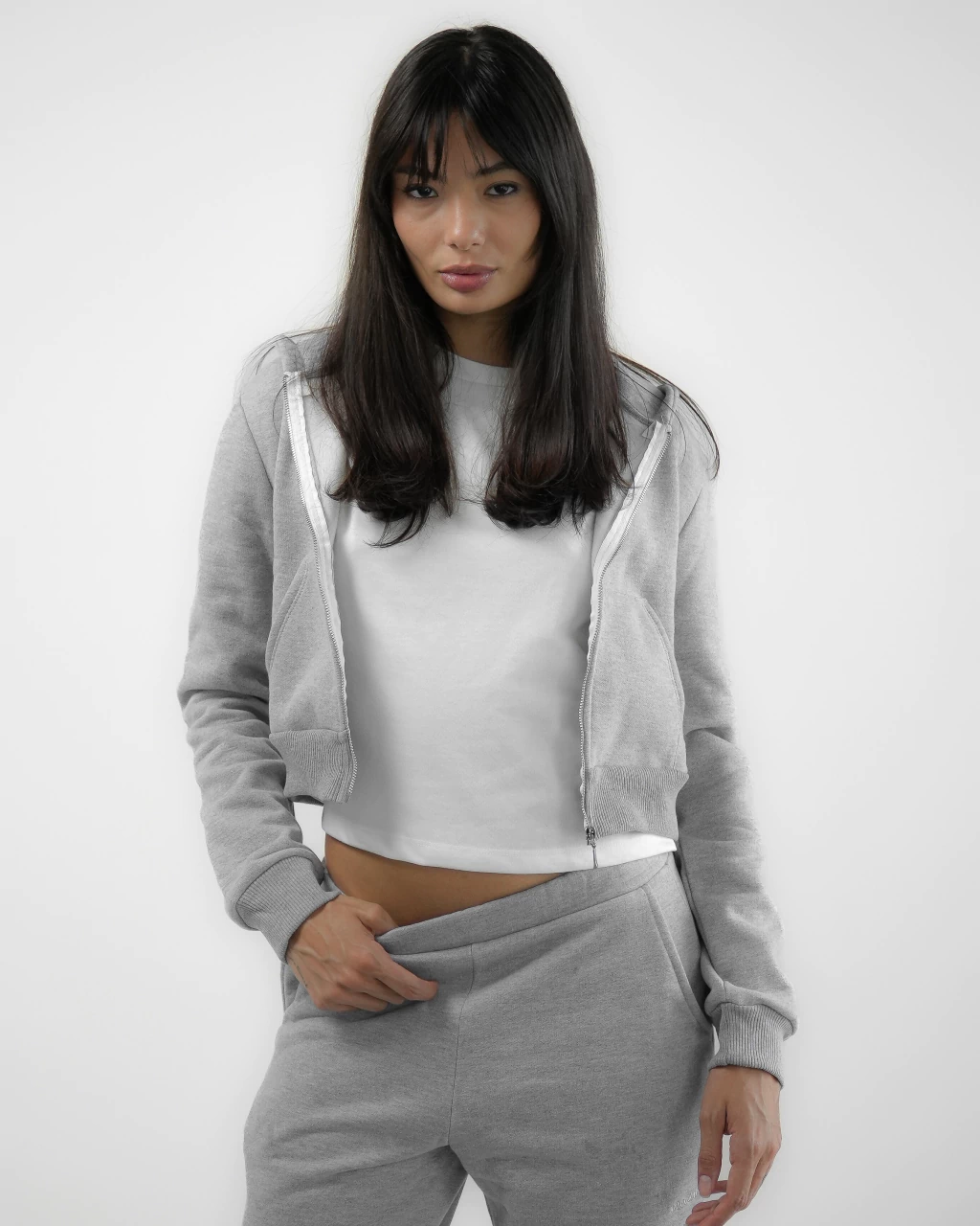 Jaqueta em moletom super confortável com fechamento em zíper de metal, possui bolsos frontais funcionais e bordado lateral.